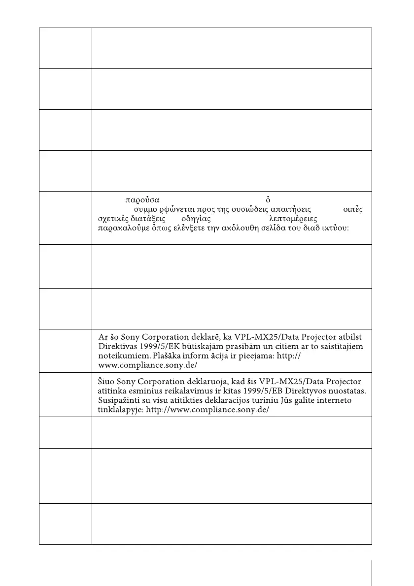 Niniejszym Sony Corporation oświadcza, ze VPL-MX25/Data Projector