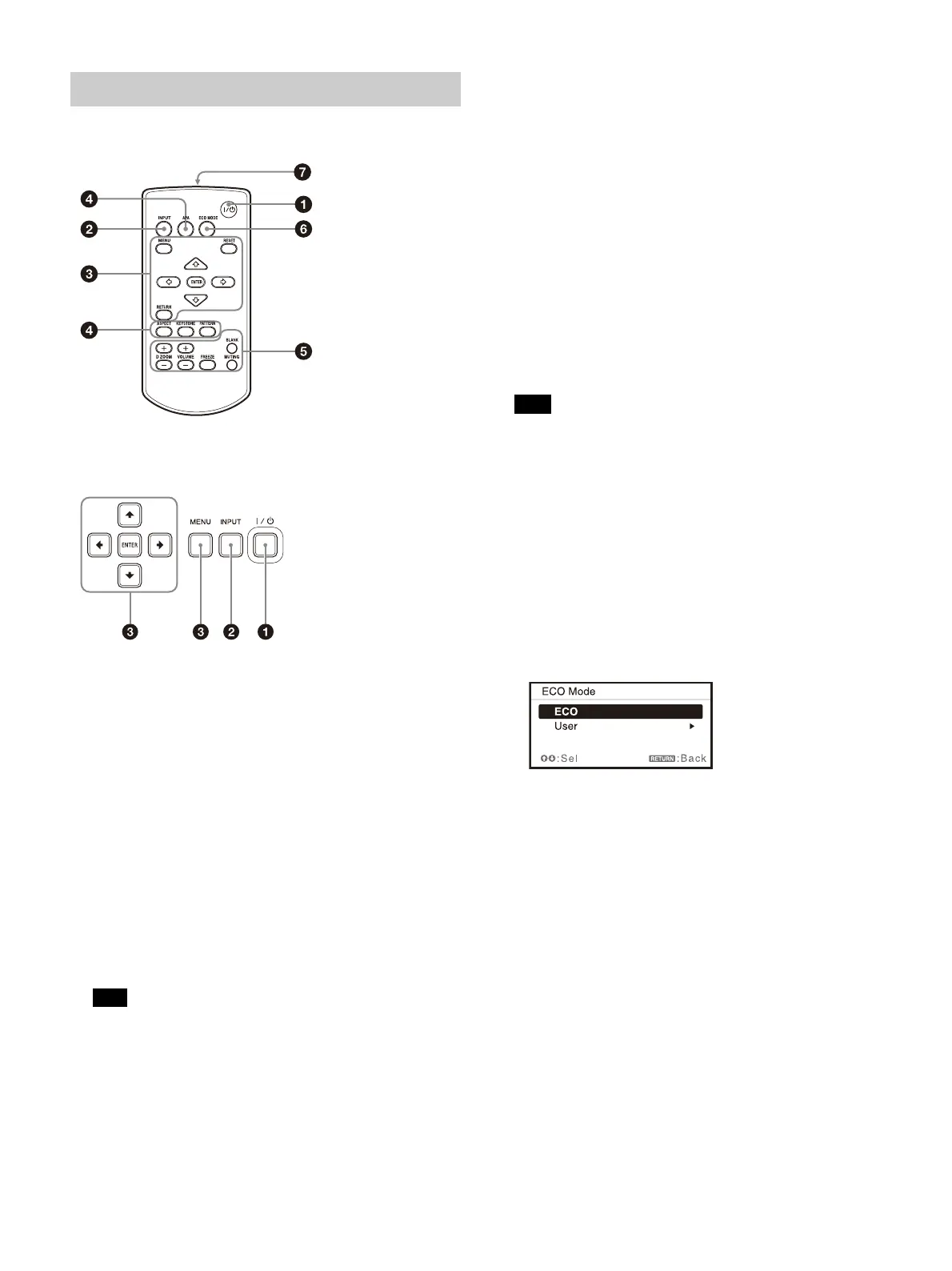Press the / key or ECO MODE key to select “ECO” or