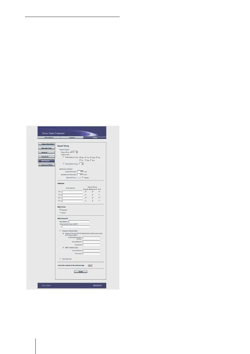 Settings for the Mail Report