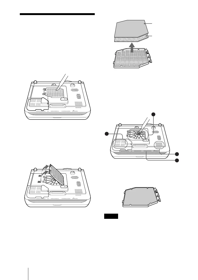 6 Insert the air filter into the four tabs of