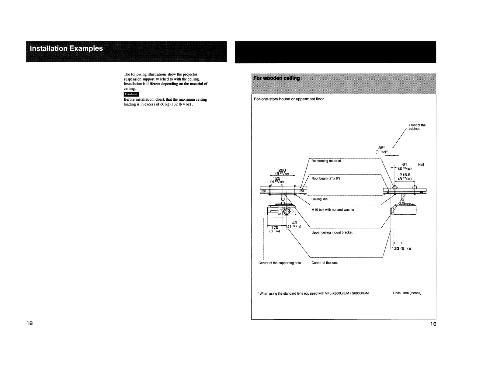 Sony VPL-S900E - Installation Examples; Wooden Ceiling Installation Example; Floor Installation Measurement Calculations