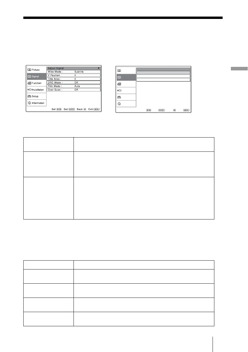 The Signal menu is used to adjust the input signal. You can adjust the size of