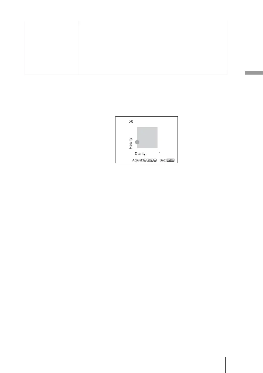 To decrease the value for “Reality,” press the m button.