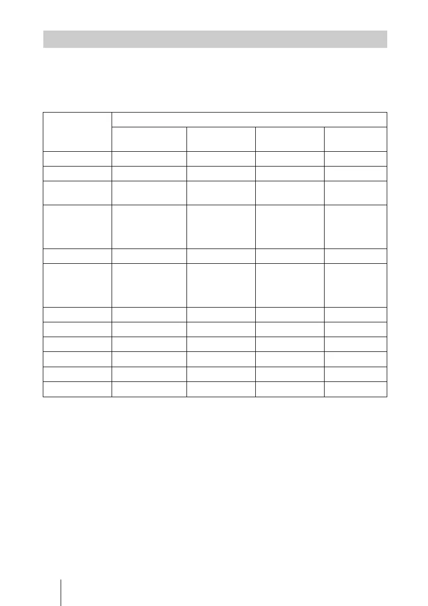 – : Not adjustable/cannot be set