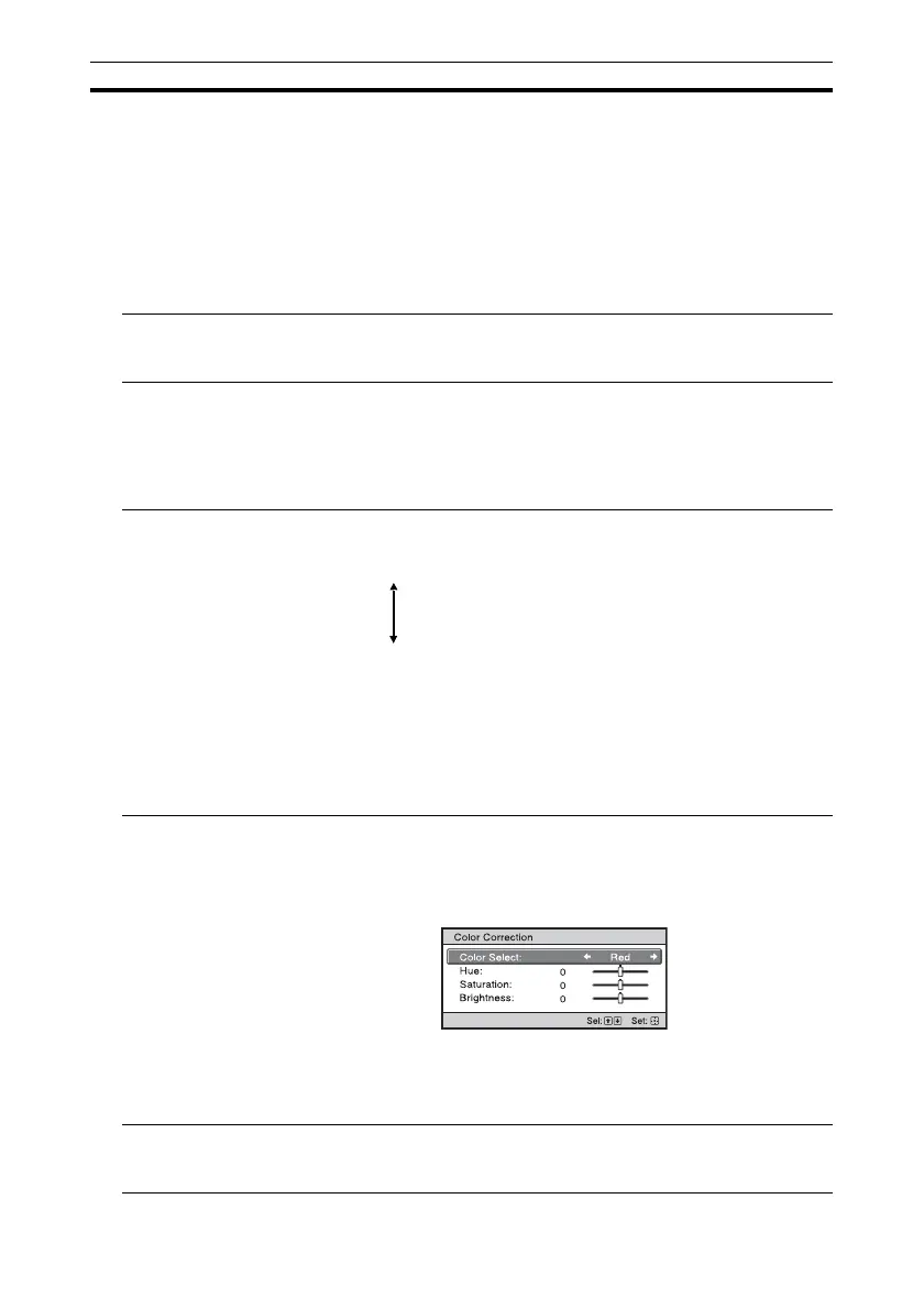 2 Press M/m to select “Hue,” “Saturation” or “Brightness,” then adjust