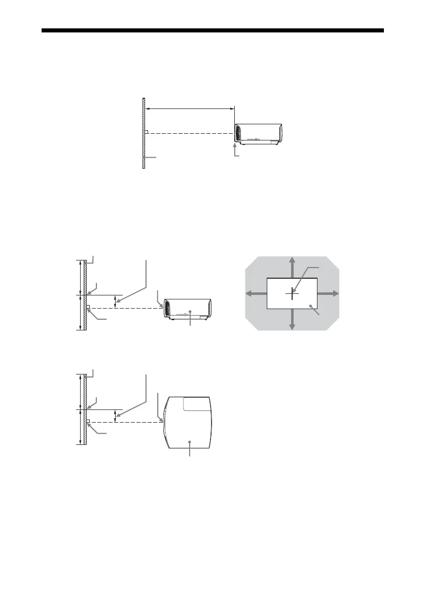 the center of the projected image. The lens shift range is regarded as 0% when the point A in