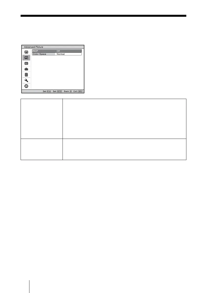 The Advanced Picture is used for adjusting the picture more.