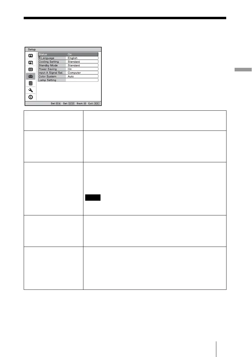 Cooling Setting Use this item when using the projector at high altitudes.