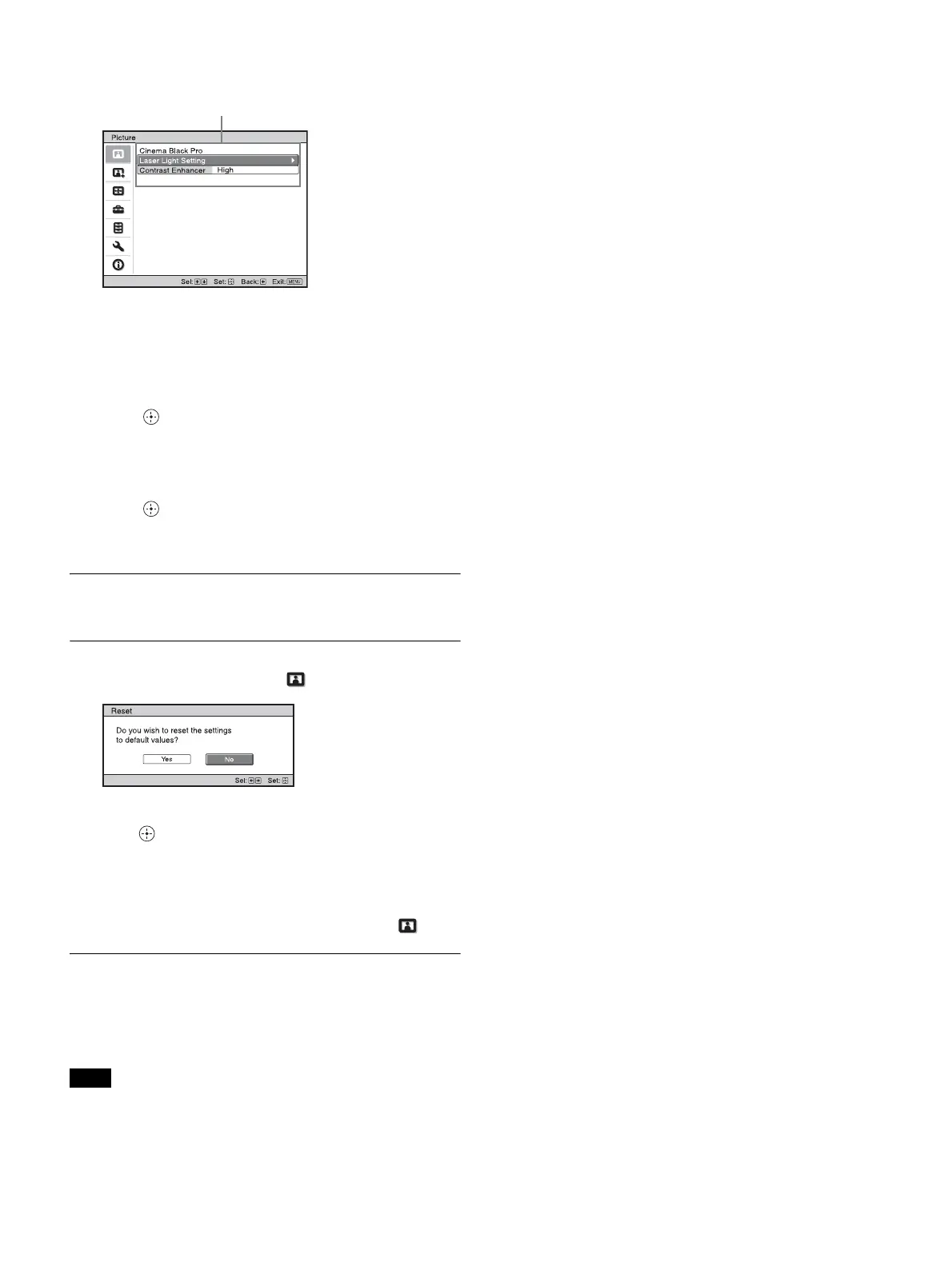 Press RESET on the remote control to reset only the