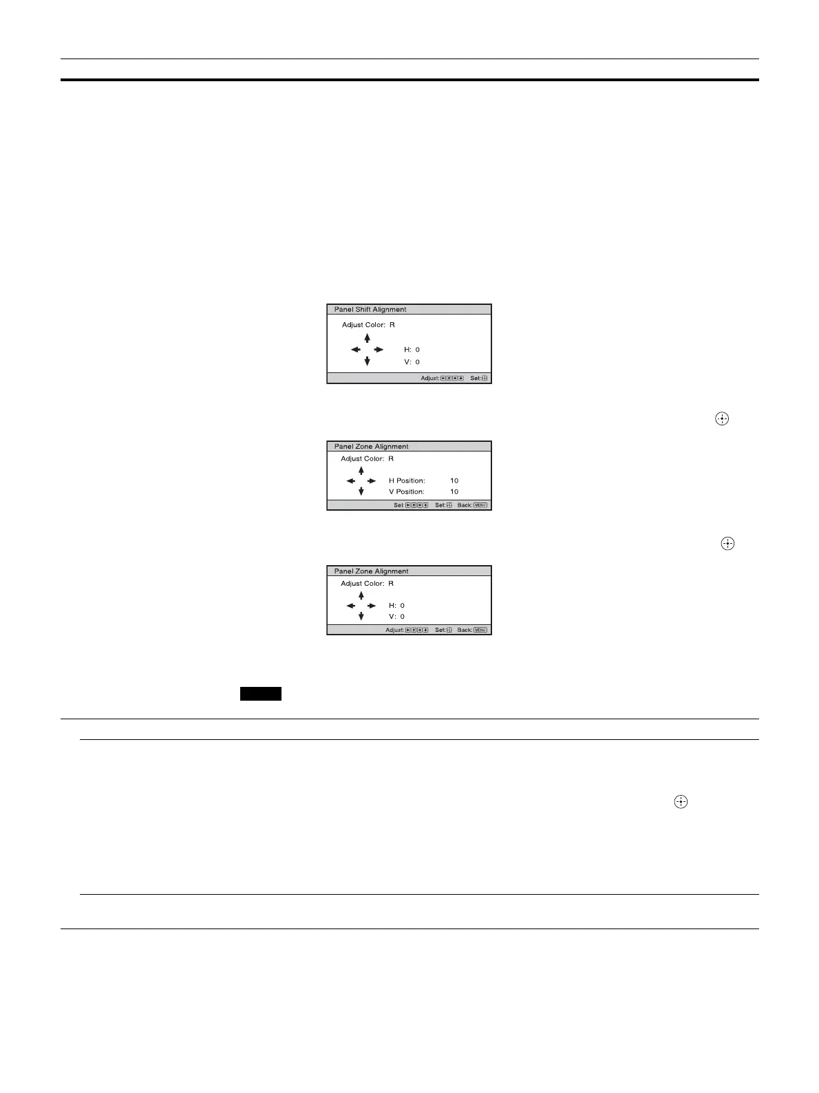 Panel Alignment This feature allows you to adjust the gaps in the color of characters or the picture on the projection