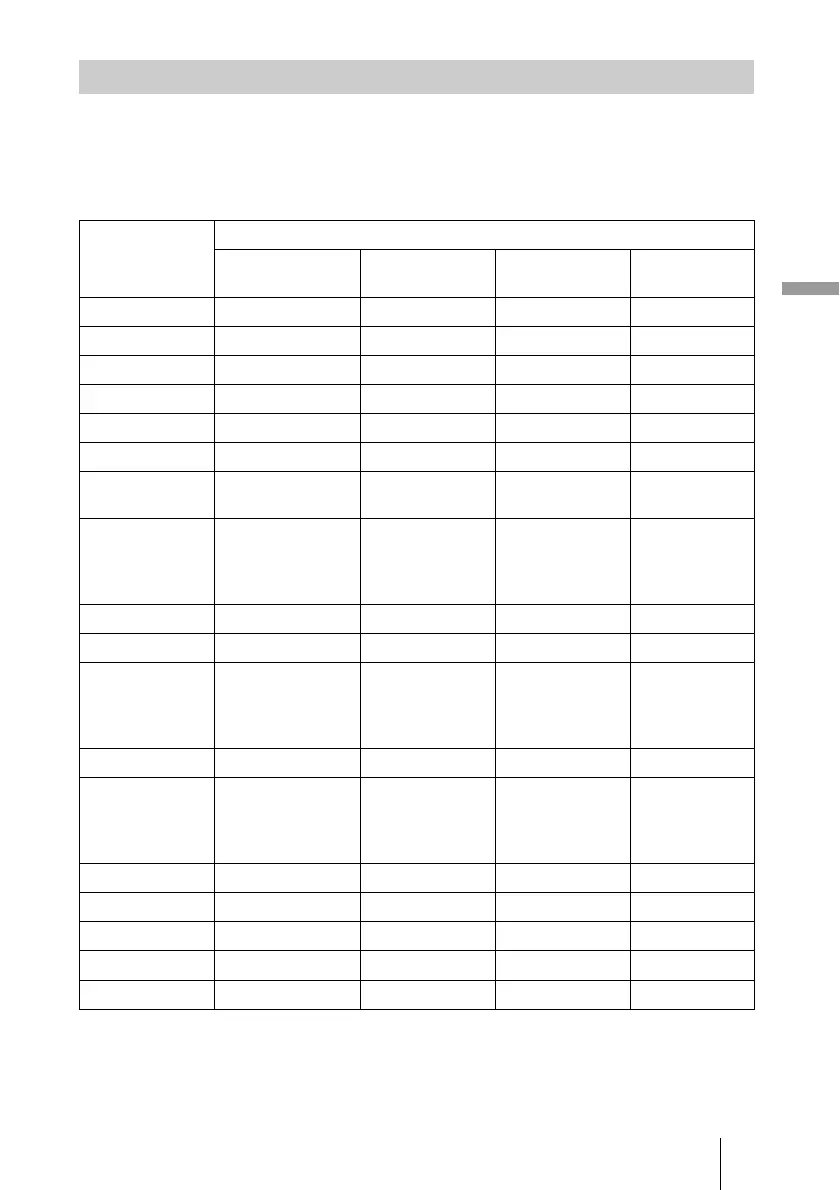 – : Not adjustable/cannot be set