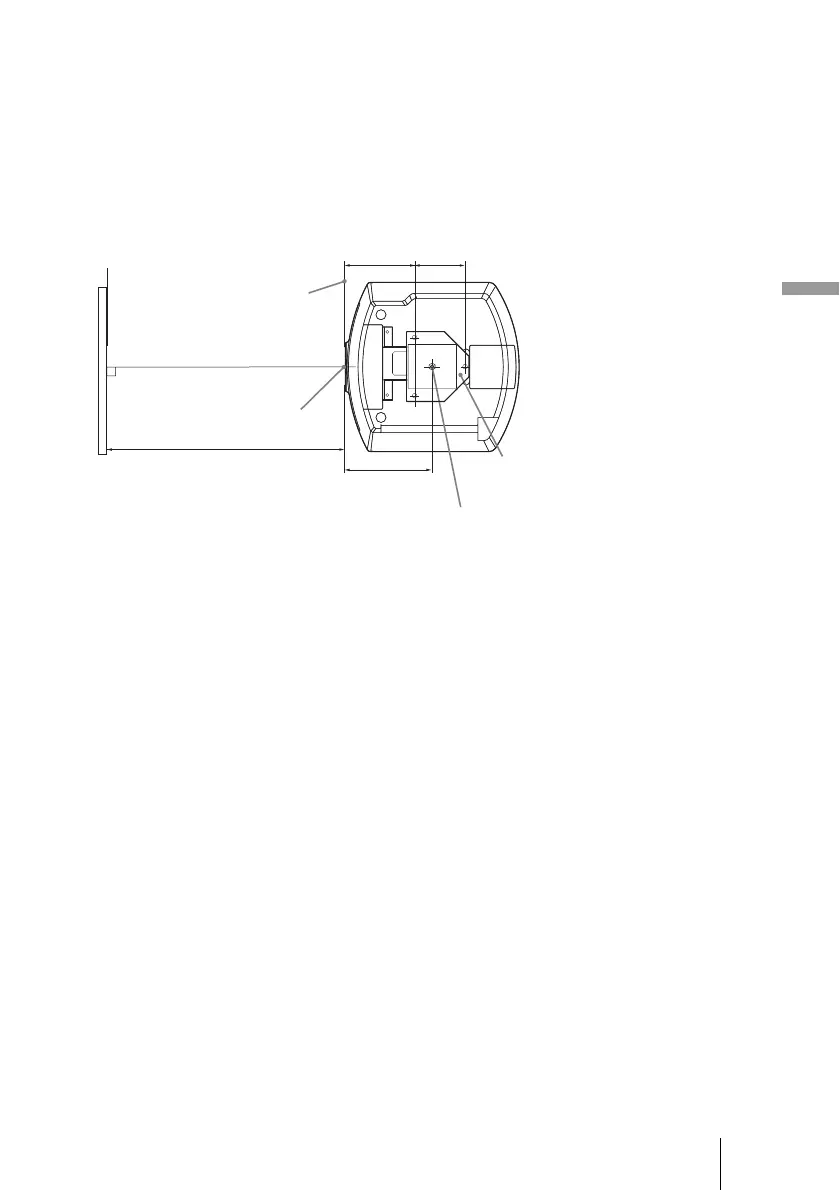 The installation measurements are shown below when installing the projector on a ceiling