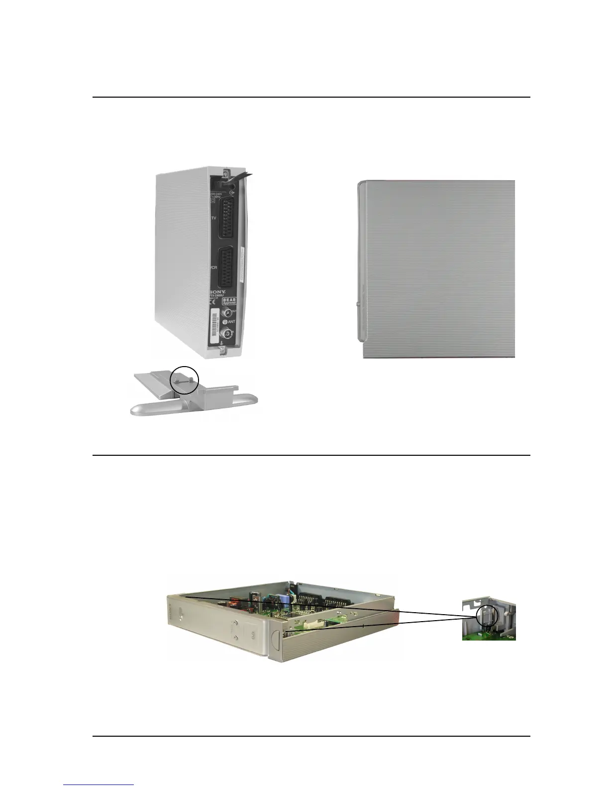 Remove the foot by releasing the clips circled and easing the foot carefully away from the unit. Remove the 2