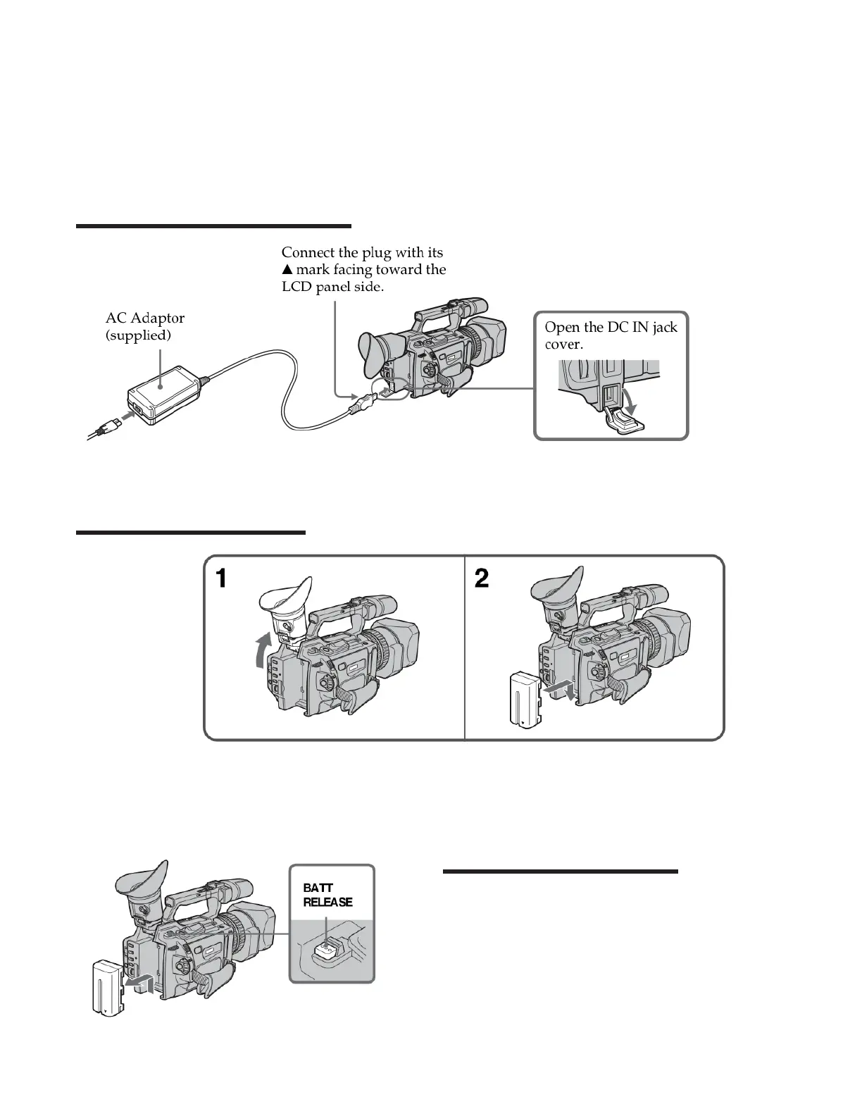 Lift up the viewnder. Slide the battery pack