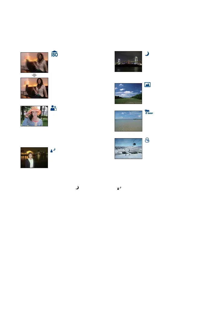 *The shutter speed is slower in (Twilight mode) and (Twilight Portrait mode), so using a tripod is