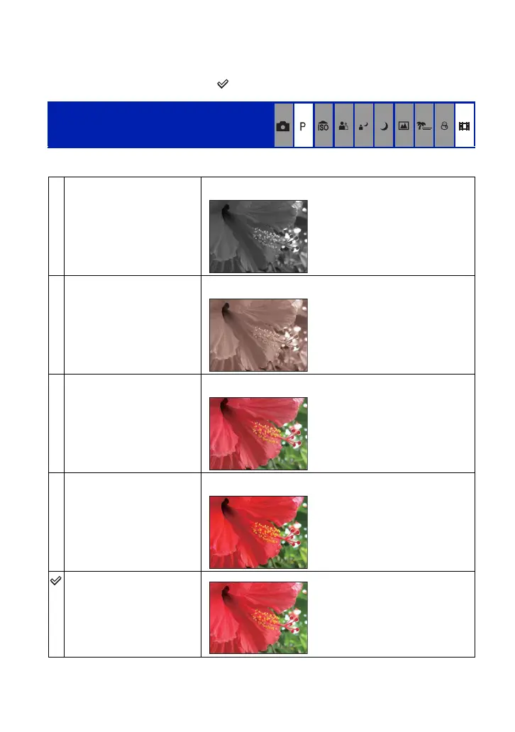 • You can select only [Normal], [B&W] or [Sepia] when shooting movies.