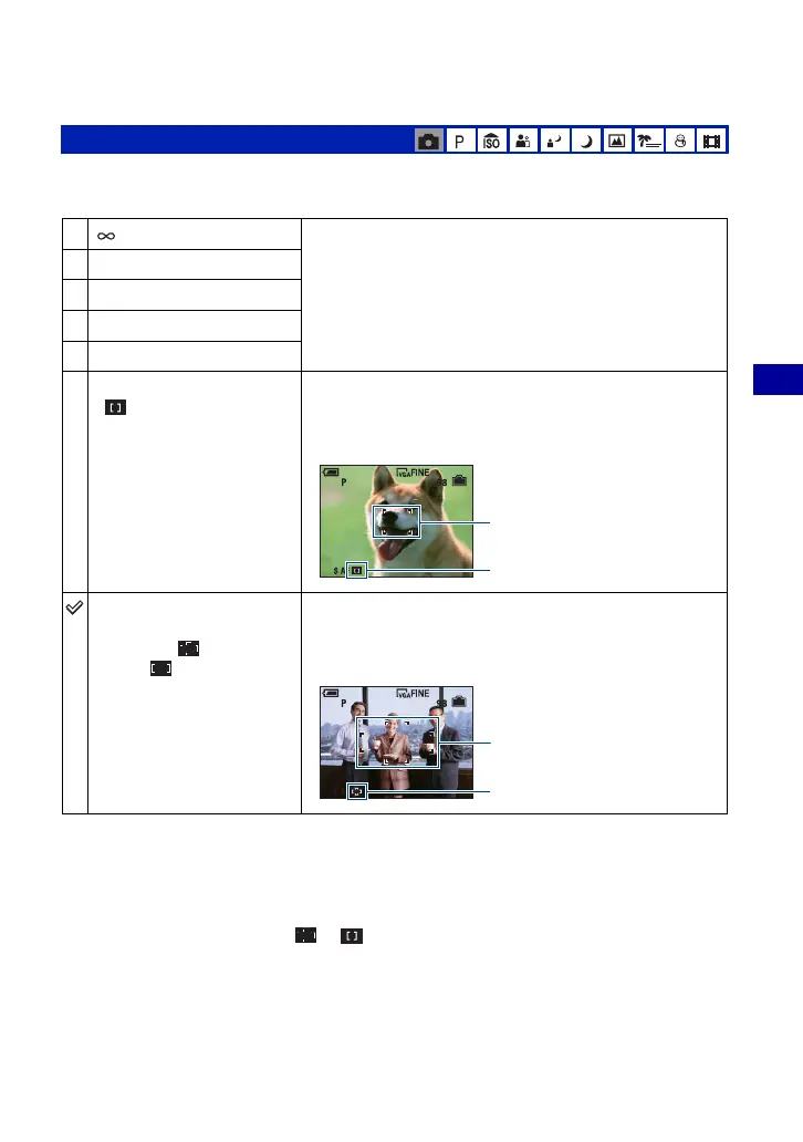 center of the frame. In this case the or indicator flashes and the AF range finder frame is not