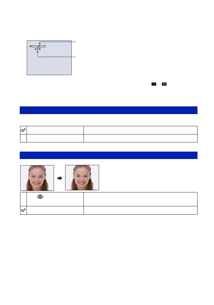 • The AF range finder frame does not appear when using the digital zoom. The or indicator flashes,