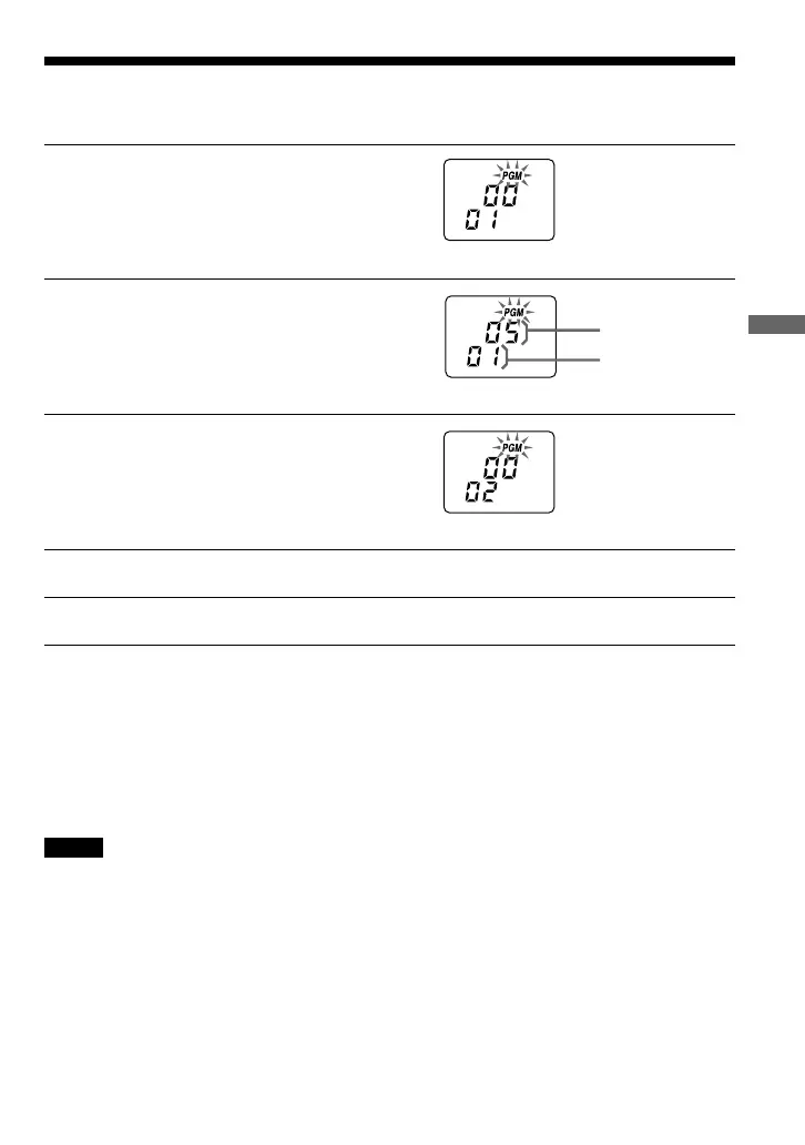 Press PLAY MODE repeatedly until “PGM” flashes, then press REPEAT/ENTER.