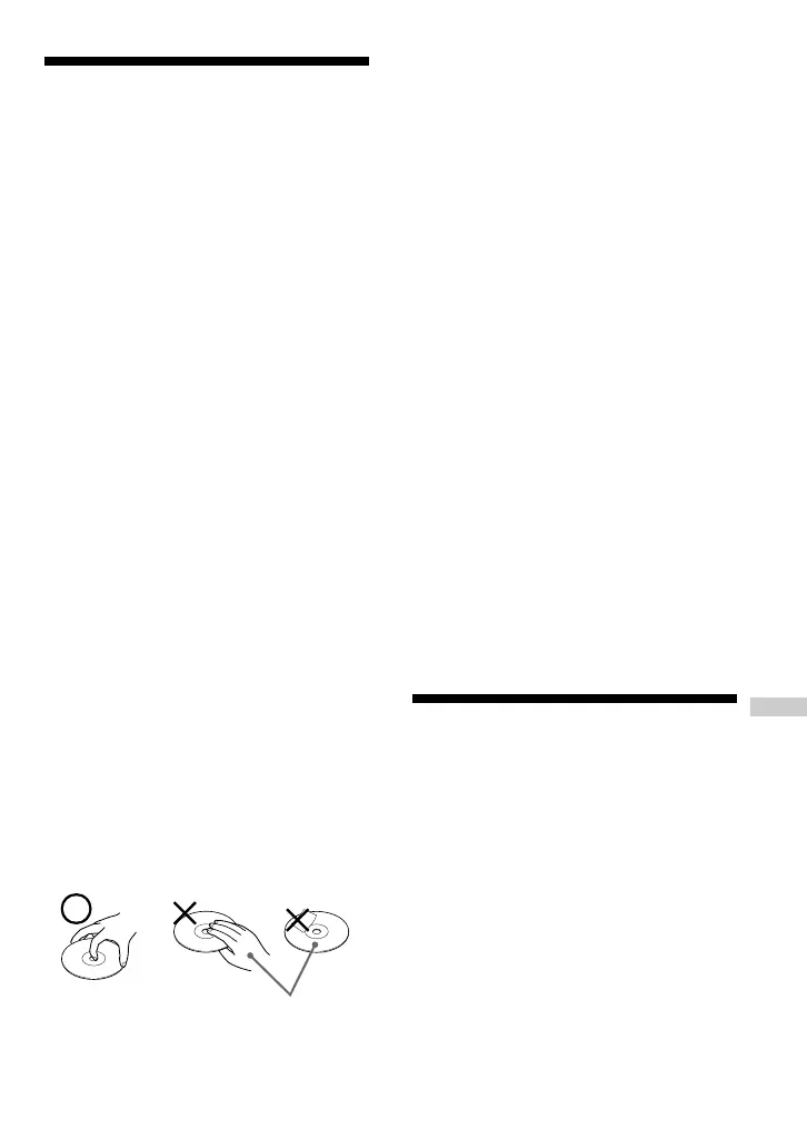• Do not stick paper or tape onto the CD.