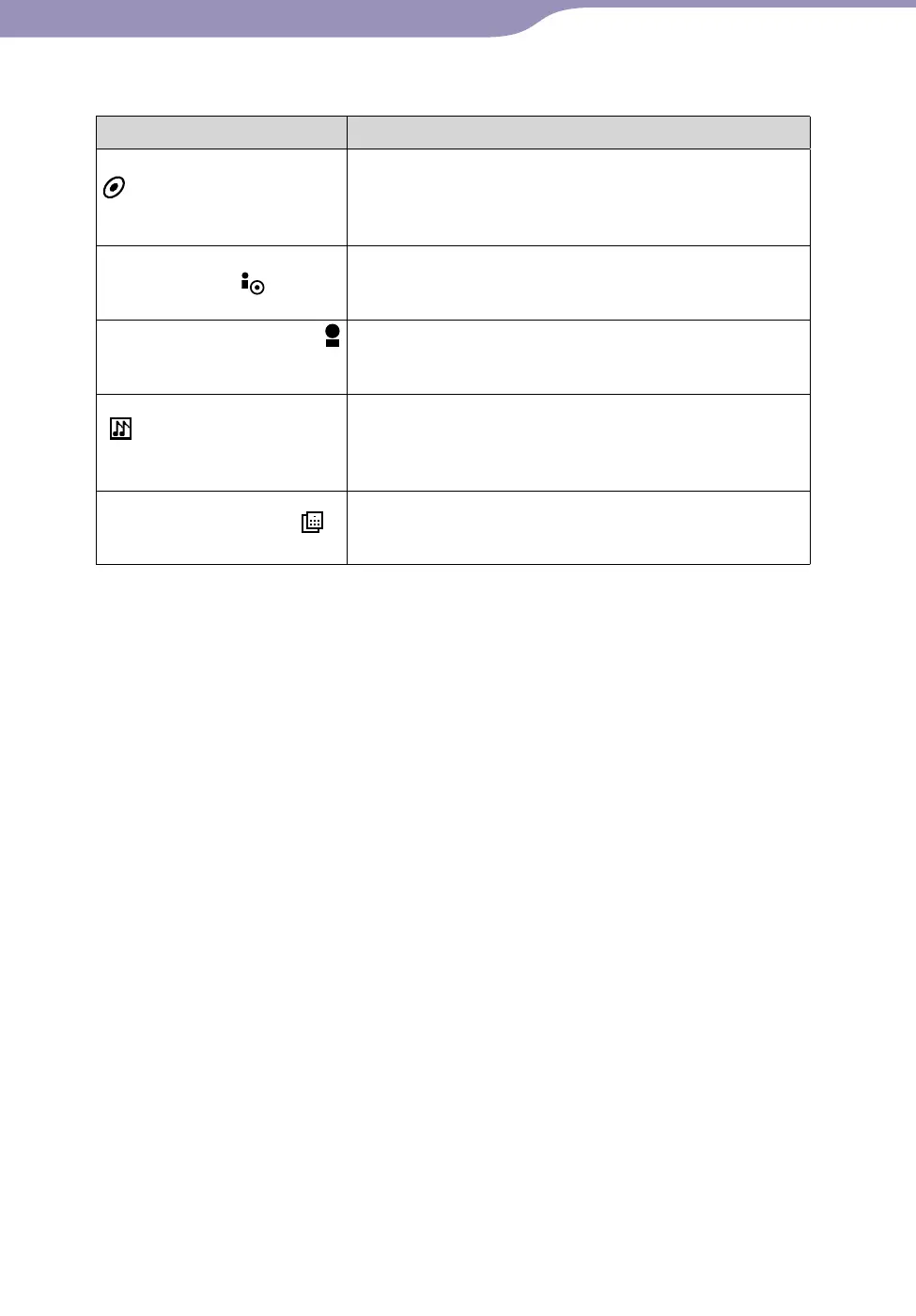 Setting item/Icon Description