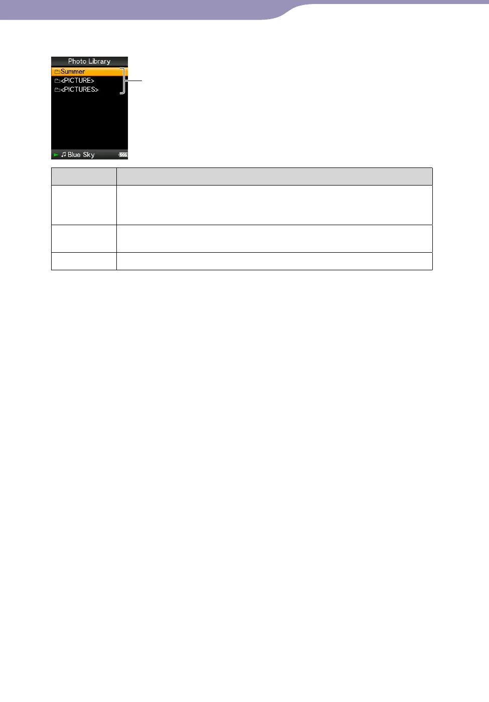 Press and hold to play back a slide show of photos in the selected