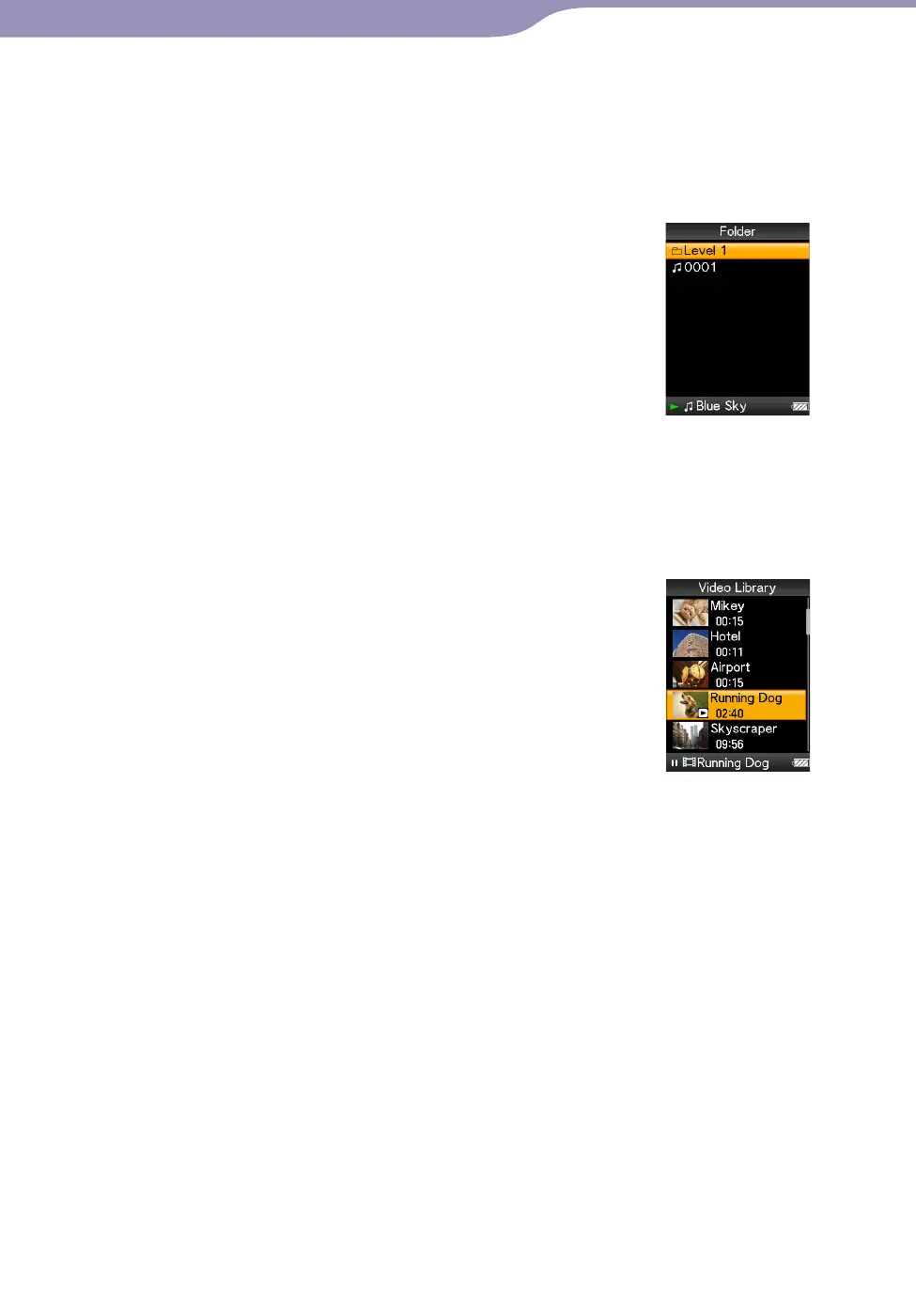 menu) for the video files on the player.