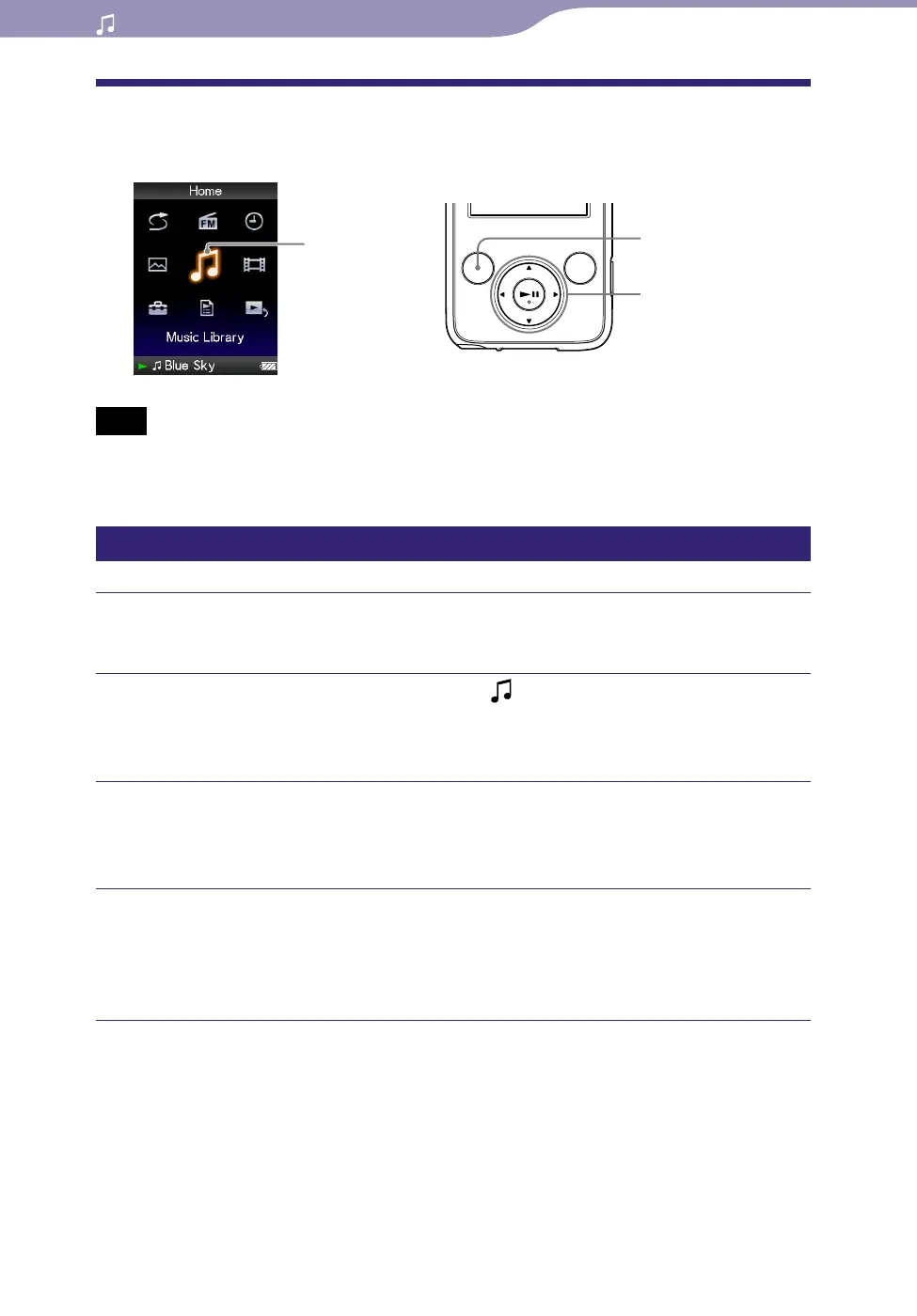 Press the /// button to select a song, and then press the