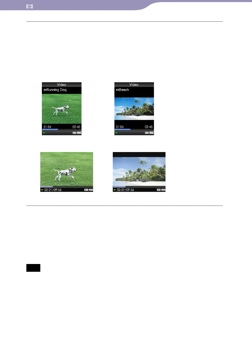 video title, its playback icon, and elapsed playing time, etc., appears. The information