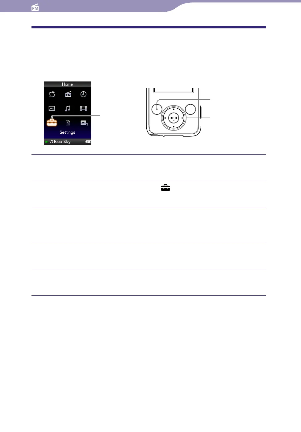 Press the /// button to select “FM Radio Settings,” and then