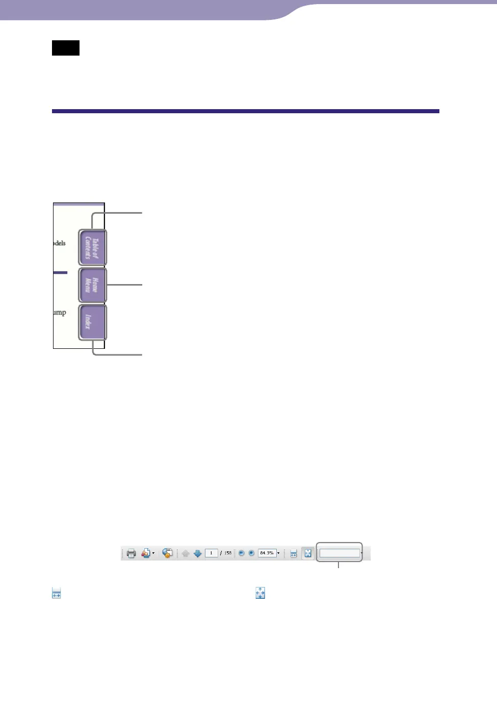 Click the buttons located in the upper right of the pages of this manual to jump