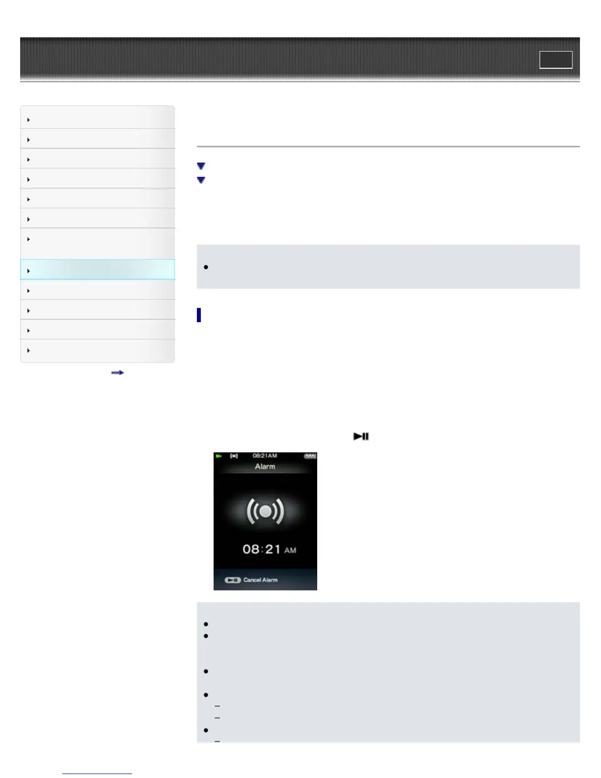 You can set the timer to play back songs at a specified time (Alarm). You can also set the period