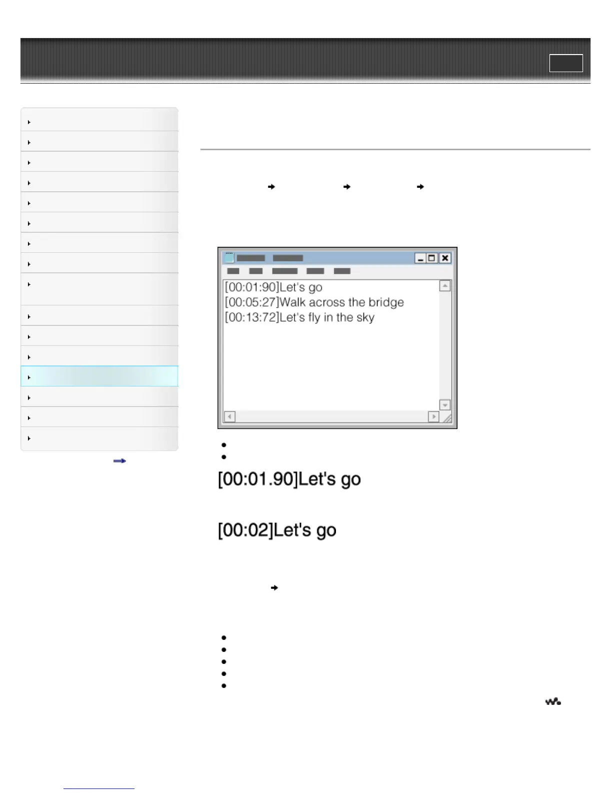 Top page > Settings > Music Settings > How to create LRC files