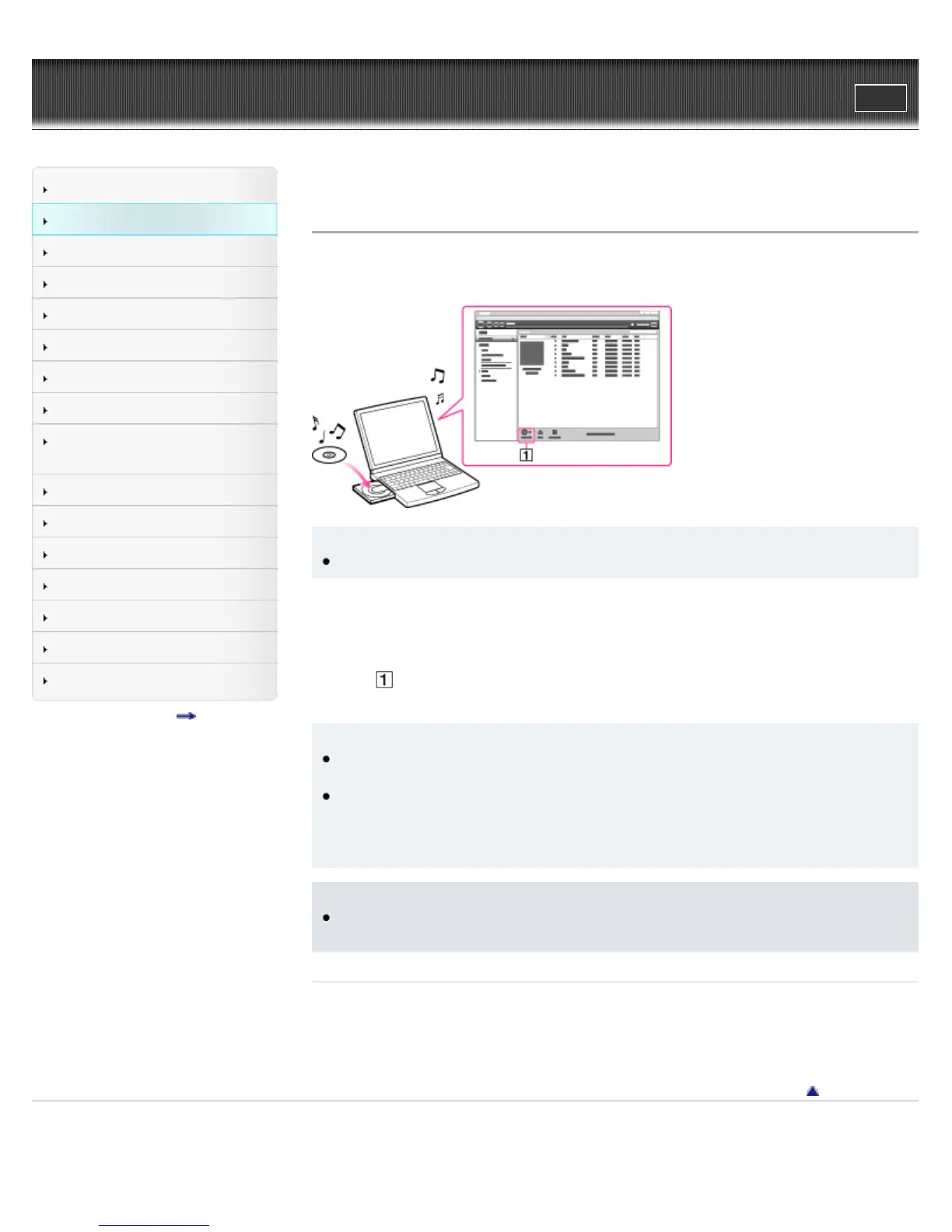 Top page > How to Use the Software > Media Go > Importing music from CDs using Media Go