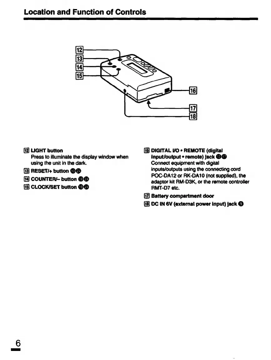 Sony Walkman TCD-D7 - Display Light Button; Reset and Increment Button (+); Counter and Decrement Button (-); Clock Setting Button (CLOCK;SET)
