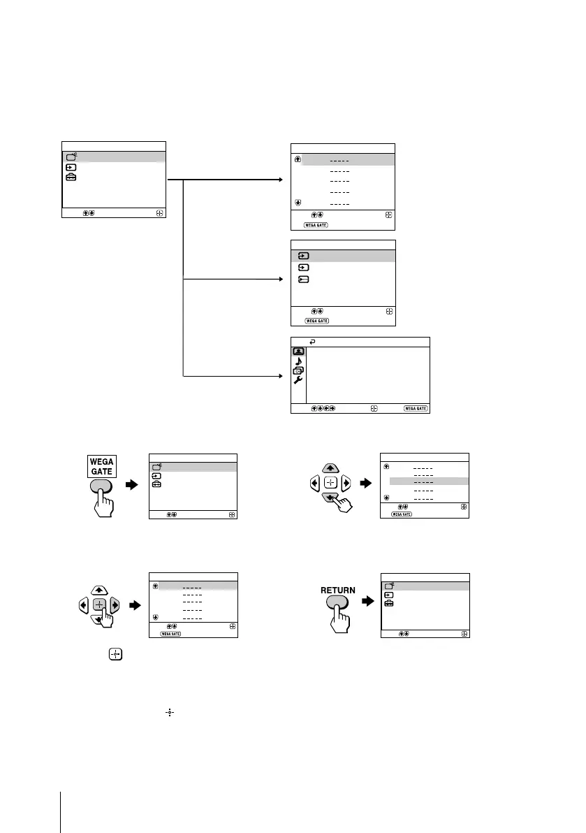 • The WEGA GATE, and V,v,B,b buttons on the top control panel can also be used for the