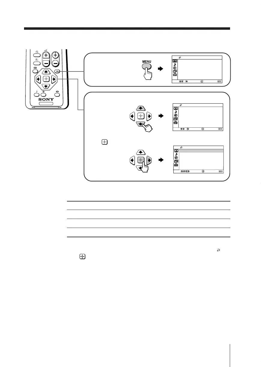 • The MENU, t and 2 +/– buttons on the top control panel can also be used for the