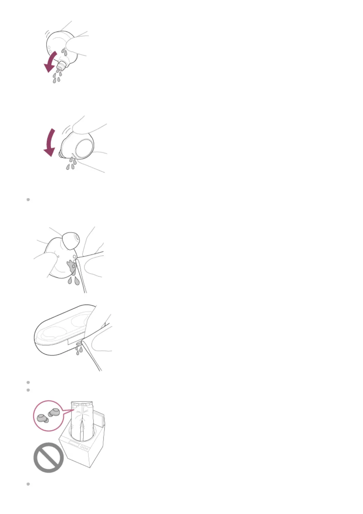 When the charging ports of the headset or charging case get dirty, wipe them clean with a soft dry cloth.