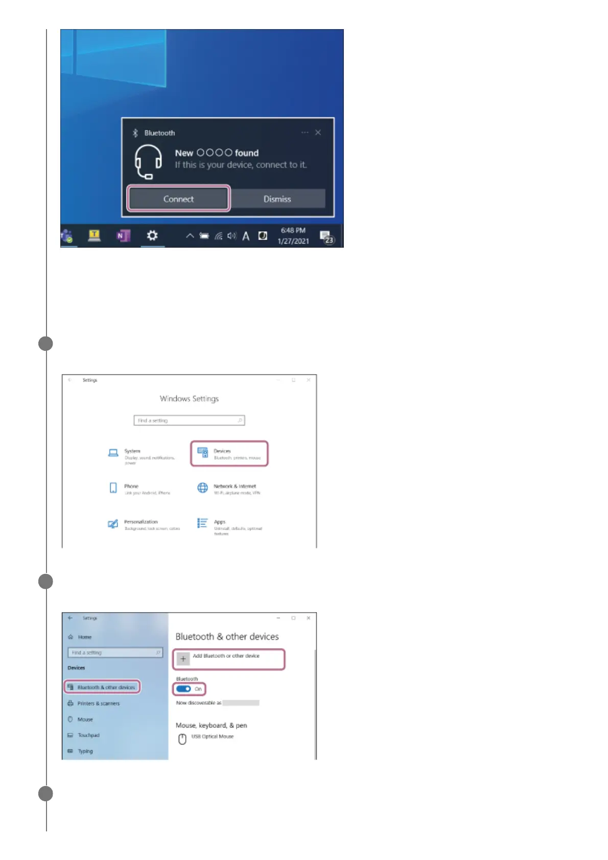 (If you selected “To connect without using the Swift Pair function” in step 4)