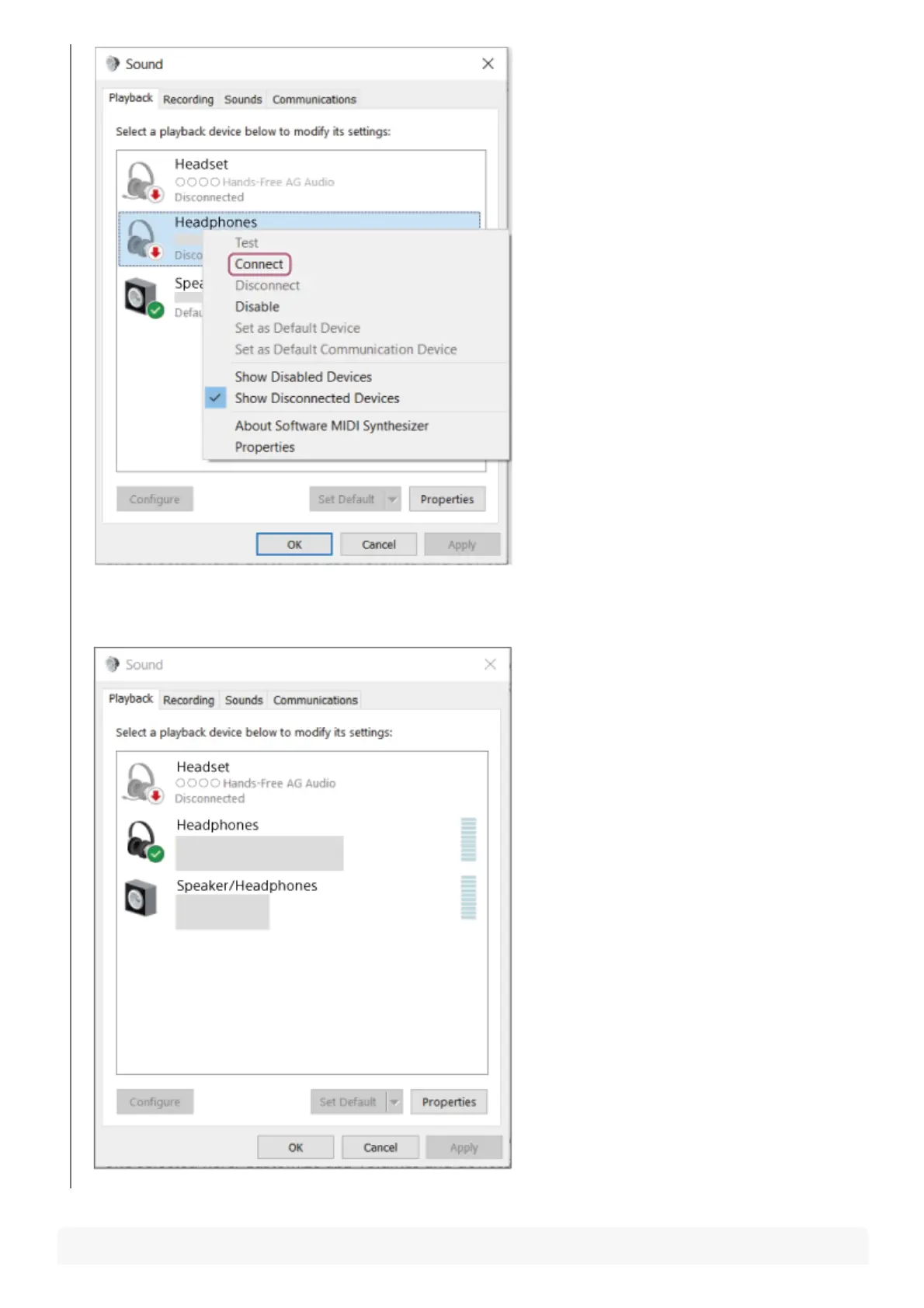 You will hear a notification sound indicating that the connection is established from both headset units (or from the
