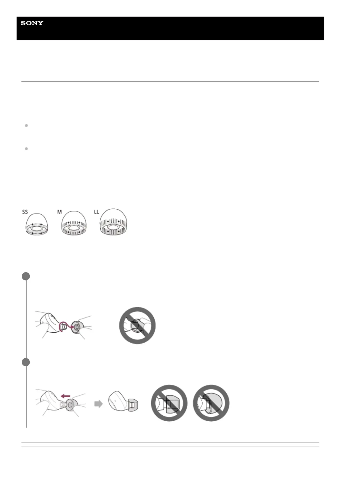 Firmly insert the earbud tip all the way. Do not attach the earbud tip in a loose or skewed manner.