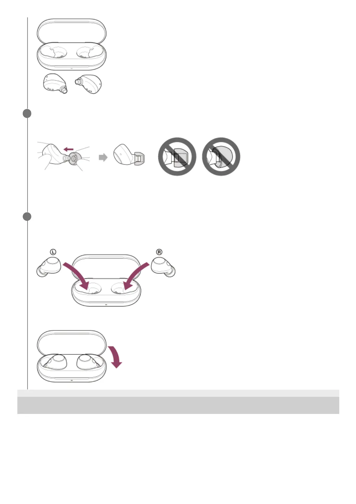 Firmly insert the earbud tip all the way. Do not attach the earbud tip in a loose or skewed manner.