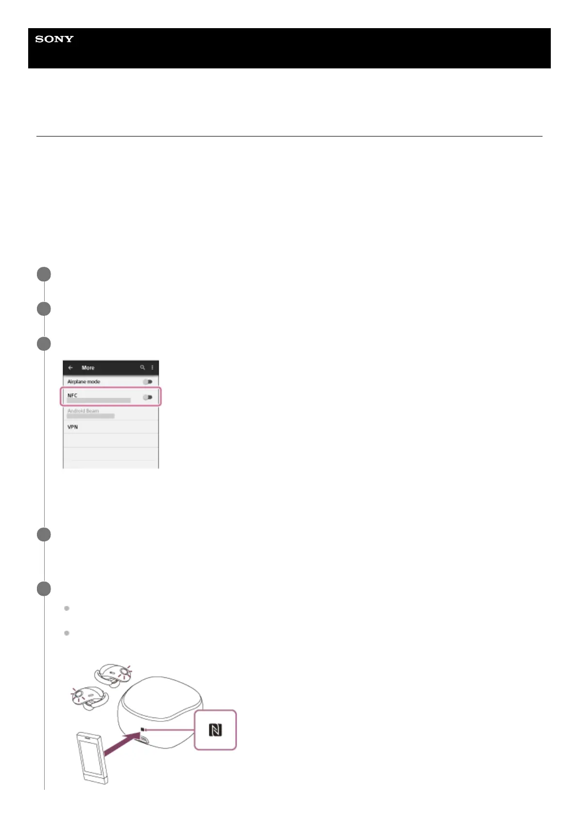 Touch the smartphone on the N-Mark at the back side of the charging case. Keep touching the smartphone with