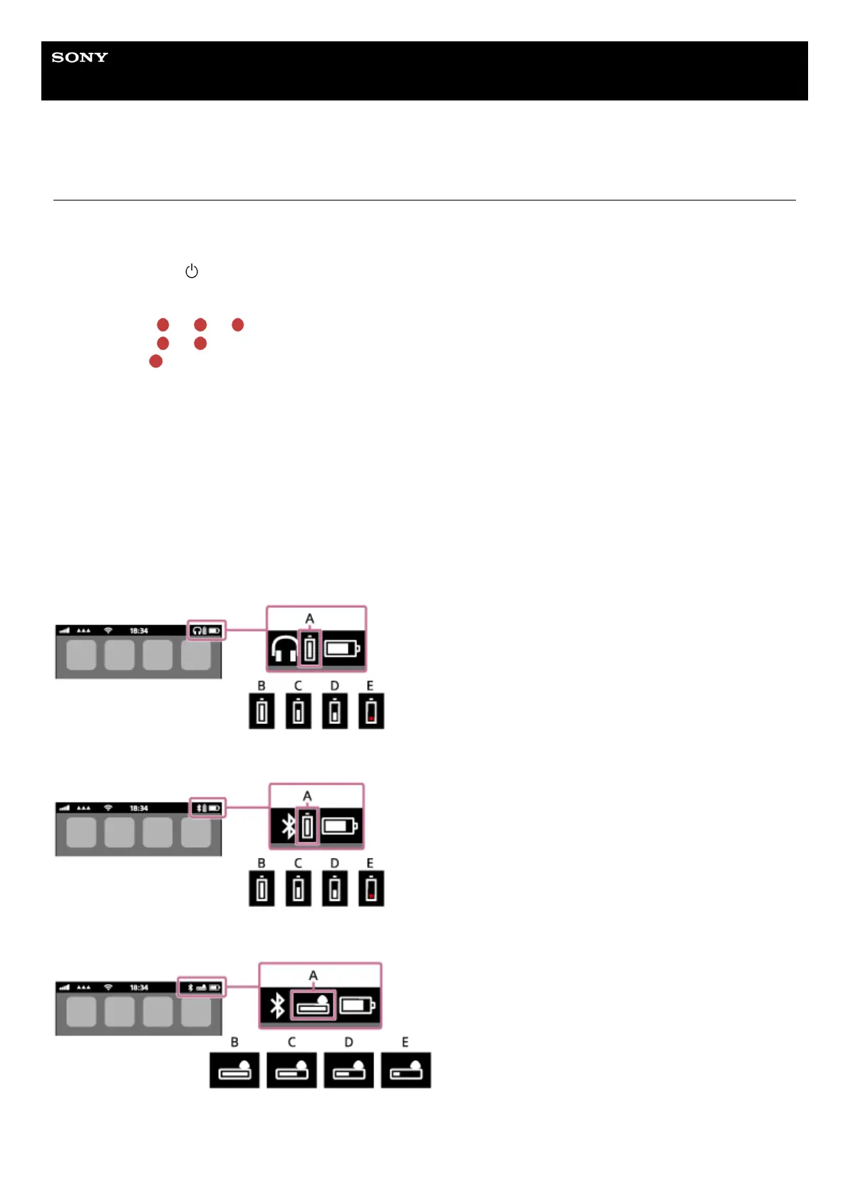 When you turn on the headset, the indicator (blue) flashes two times, then the indicator (red) flashes.