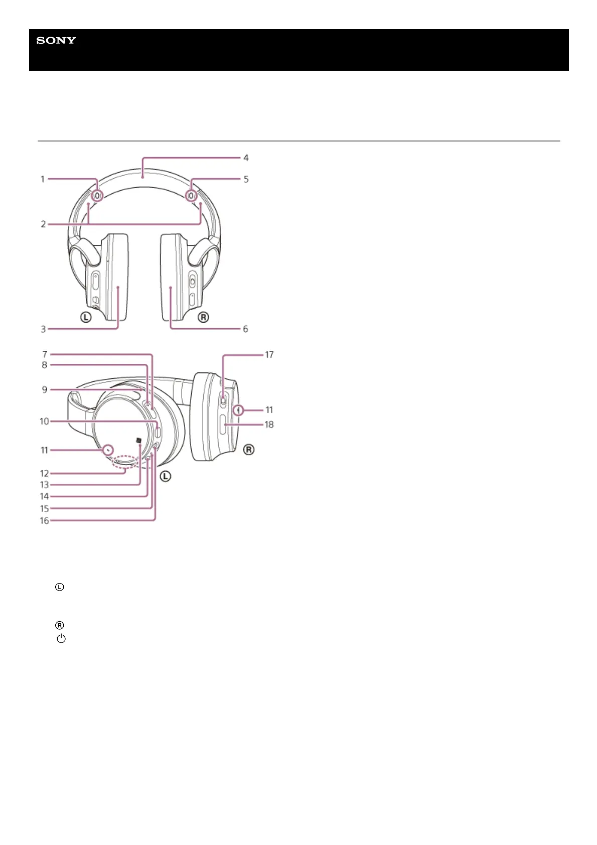 Lights up in red or blue to indicate the power or communication status of the headset.