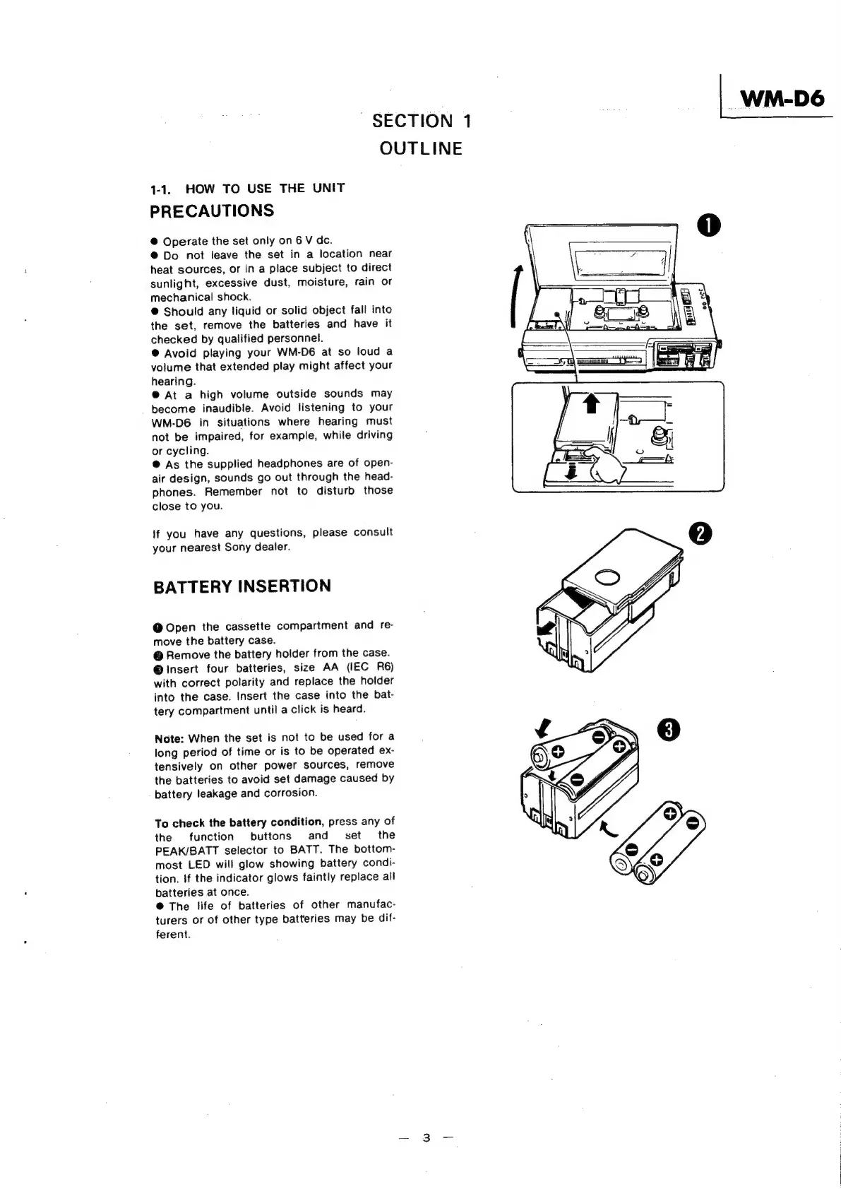 Sony WM-D6 - How to Use the Unit; Battery Insertion