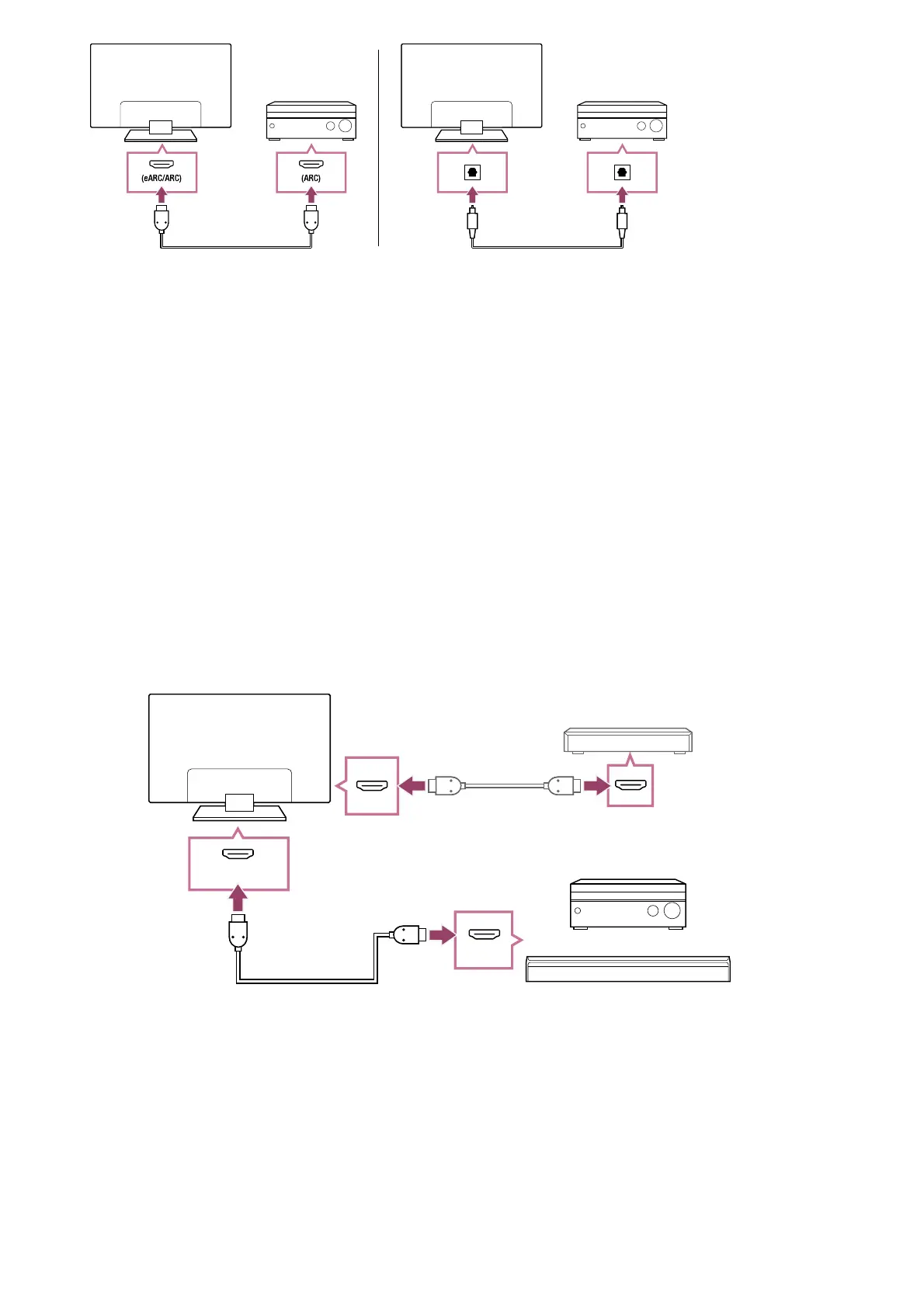 Connect the audio system to the TV’s HDMI input terminal bearing the text “ARC” or