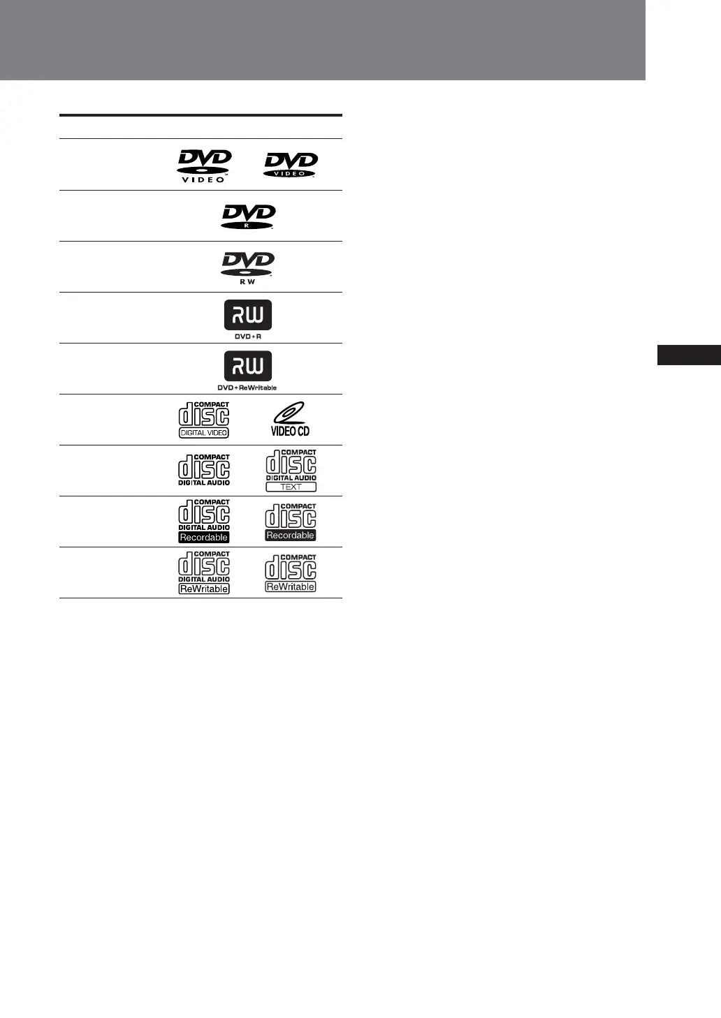“DVD VIDEO”, “DVD-R”, “DVD-RW”, “DVD+R”,
