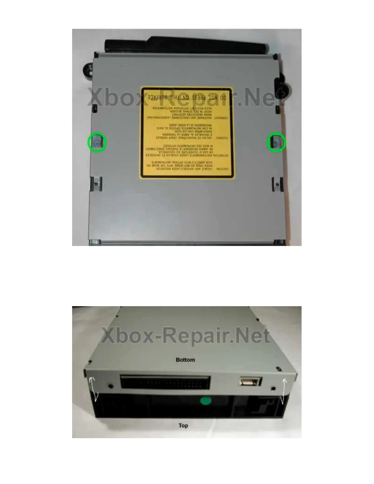 Remove the bottom tray first, flip the drive so the bottom is facing up. You