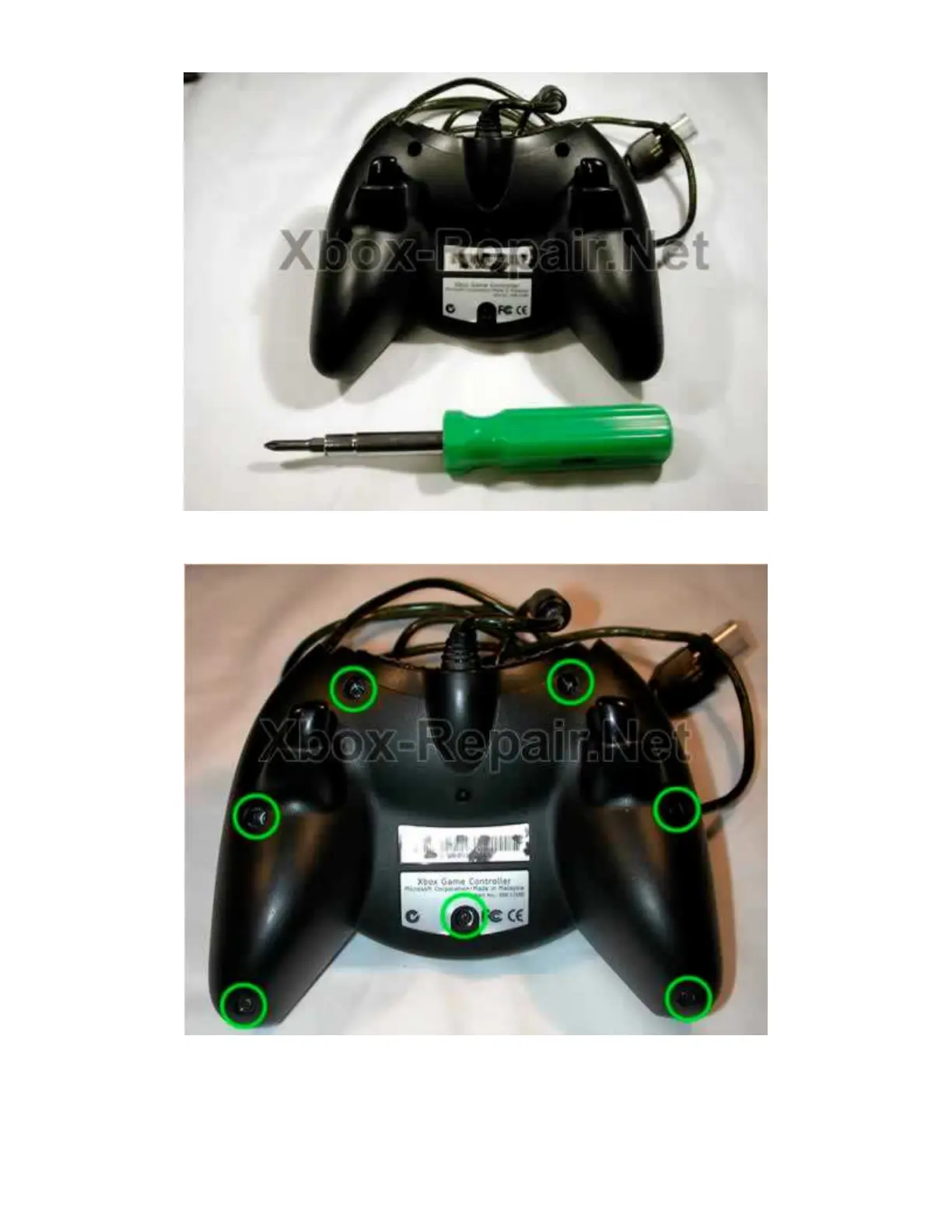 Unscrew and remove them, flip the controller back so the screw holes are